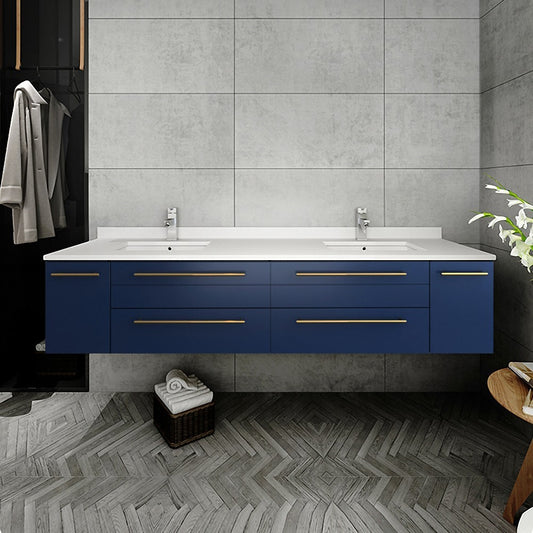 Fresca Lucera 72" Royal Blue Wall Hung Double Undermount Sink Bathroom Cabinet