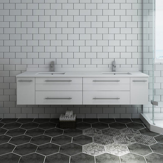 Fresca Lucera 72" White Bathroom Cabinet w/ Top & Double Undermount Sinks