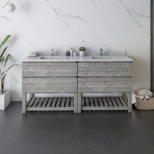 Fresca Formosa 72" Double Sink Bathroom Cabinet w/ Top & Sinks in Ash