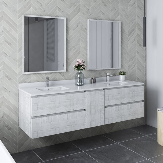 Fresca Formosa 70" Wall Hung Double Sink Modern Bathroom Cabinet in Rustic White