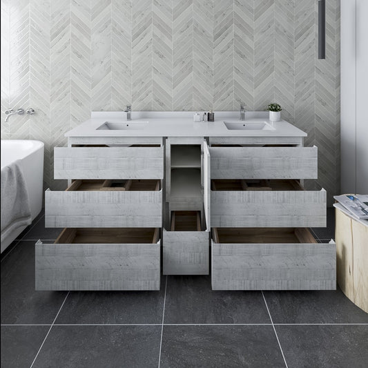 Fresca Formosa 70" Wall Hung Modern Bathroom Cabinet in Rustic White