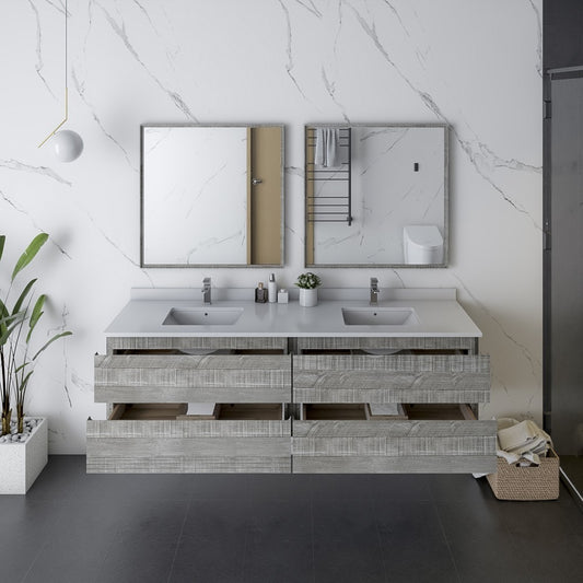 Fresca Formosa 72" Wall Hung Double Sink Bathroom Cabinet in Ash