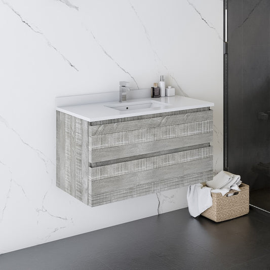 Fresca Formosa 36" Wall Hung Modern Bathroom Cabinet w/ Top & Sink in Ash