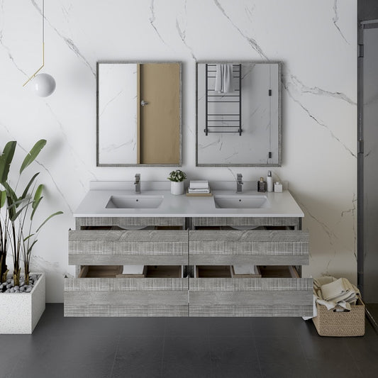 Fresca Formosa 60" Wall Hung Double Sink Bathroom Cabinet w/ Top & Sinks in Ash