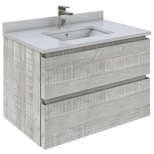 Fresca Formosa 30" Wall Hung Bathroom Cabinet w/ Top & Sink in Rustic White