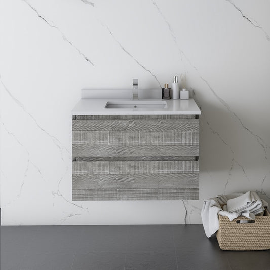 Fresca Formosa 30" Wall Hung Modern Bathroom Cabinet w/ Top & Sink in Ash