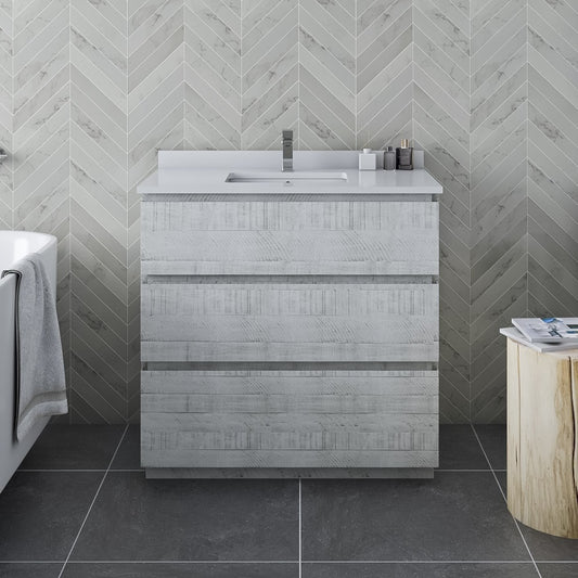 Fresca Formosa 36" Floor Standing Bathroom Cabinet w/ Top & Sink in Rustic White