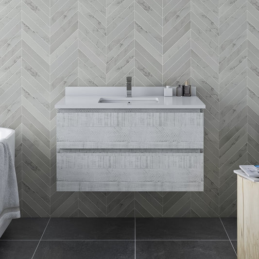 Fresca Formosa 36" Wall Hung Bathroom Cabinet w/ Top & Sink in Rustic White
