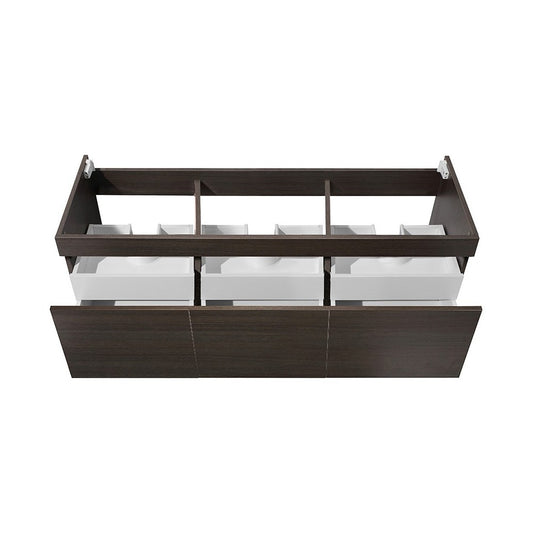 Fresca Mezzo 60" Teak Wall Hung Double Sink Modern Bathroom Cabinet