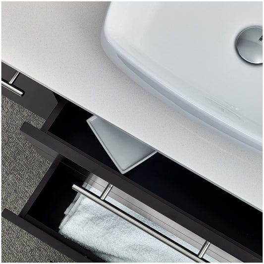 36 Espresso Wall Hung Bathroom Cabinet w/ Top & Vessel Sink - Right Version