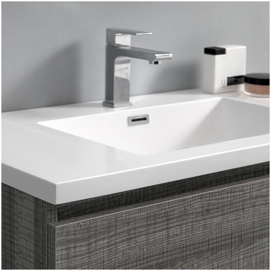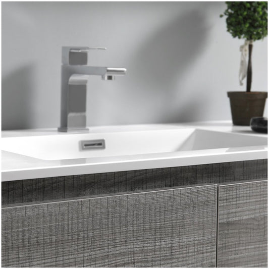 36 Glossy Ash Gray Free Standing Modern Bathroom Cabinet w/ Integrated Sink