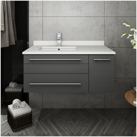 36 Gray Wall Hung Bathroom Cabinet w/ Top & Undermount Sink - Left Version