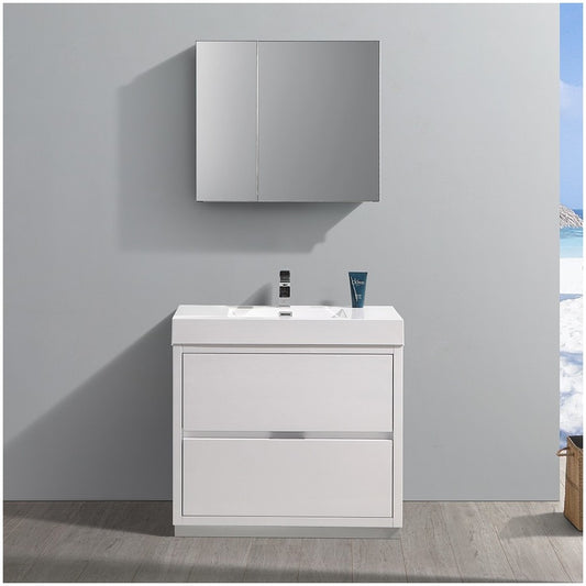 36 White Free Standing Modern Bathroom Vanity w/ Medicine Cabinet