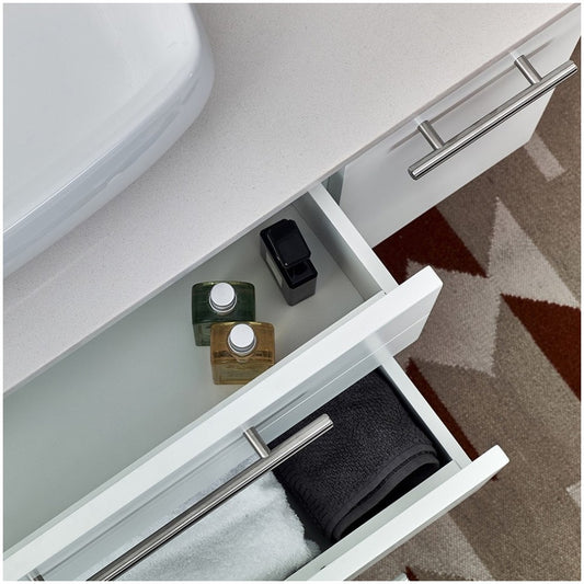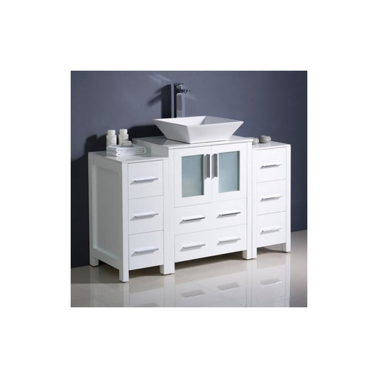 48 White Modern Bathroom Cabinets w/ Top & Vessel Sink, FCB62-122412WH-CWH-V