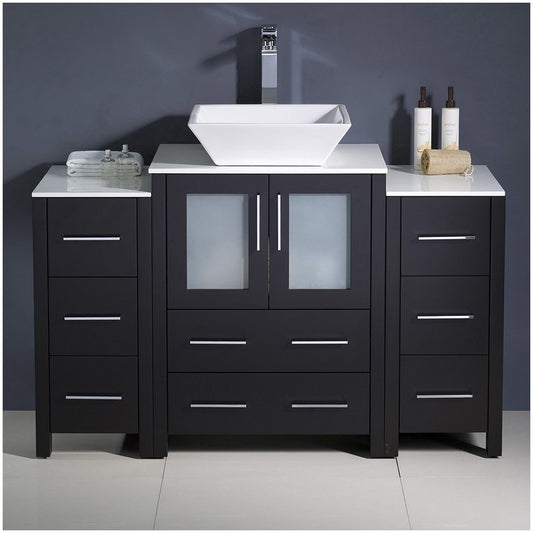 48 Espresso Modern Bathroom Cabinets w/ Top & Vessel Sink, FCB62-122412ES-CWH-V