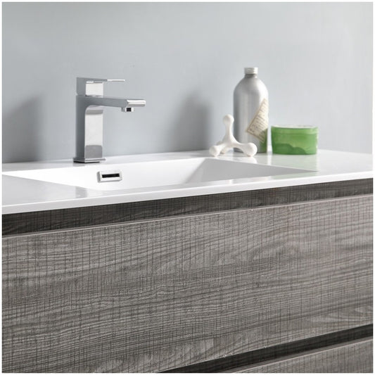 48 Glossy Ash Gray Free Standing Modern Bathroom Cabinet w/ Integrated Sink