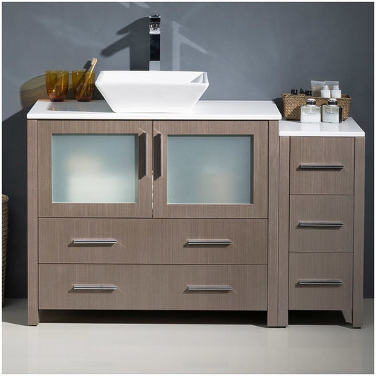 48 Gray Oak Modern Bathroom Cabinets w/ Top & Vessel Sink, FCB62-3612GO-CWH-V