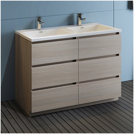 48 Gray Wood Free Standing Modern Bathroom Cabinet w/ Integrated Double Sink