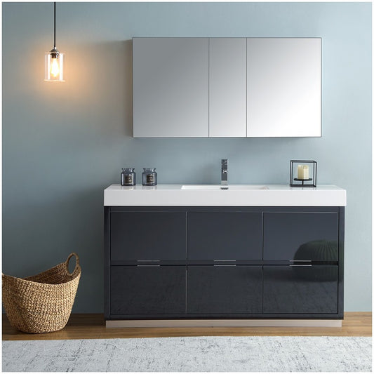 60 Dark Slate Gray Free Standing Modern Bathroom Vanity w/ Medicine Cabinet