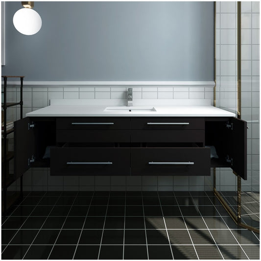 60 Espresso Wall Hung Modern Bathroom Cabinet w/ Top & Single Undermount Sink