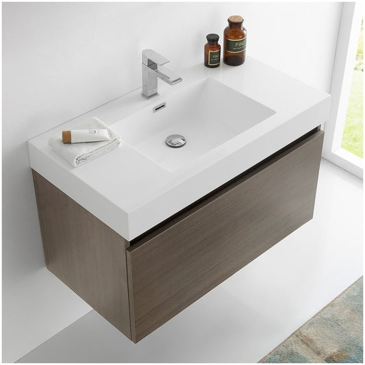 Fresca Mezzo 36" Gray Oak Wall Hung Modern Bathroom Cabinet w/ Integrated Sink