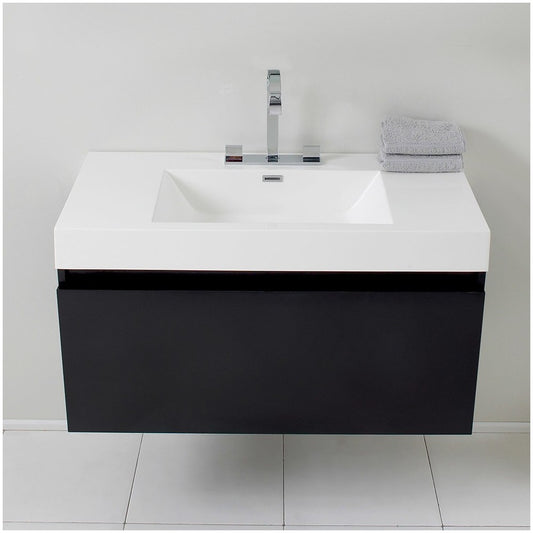 Fresca Mezzo 39" Black Modern Bathroom Cabinet w/ Integrated Sink