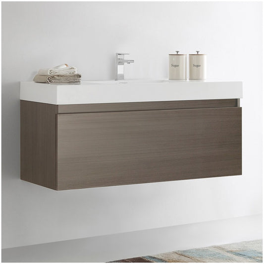 Fresca Mezzo 48" Gray Oak Wall Hung Modern Bathroom Cabinet w/ Integrated Sink