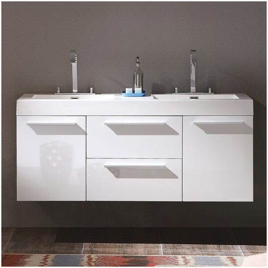 Fresca Opulento 54" White Modern Double Sink Cabinet w/ Integrated Sinks
