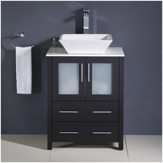 Fresca Torino 24" Espresso Modern Bathroom Cabinet w/ Top & Vessel Sink