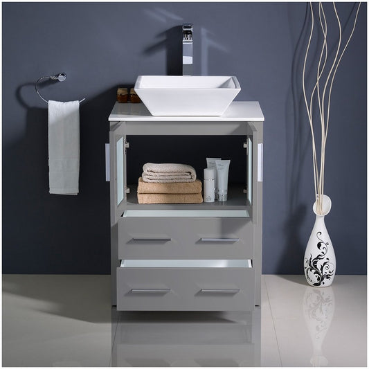 Fresca Torino 24" Gray Modern Bathroom Cabinet w/ Top & Vessel Sink