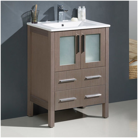 Fresca Torino 24" Gray Oak Modern Bathroom Cabinet w/ Integrated Sink