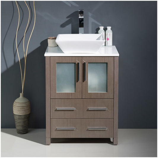 Fresca Torino 24" Gray Oak Modern Bathroom Cabinet w/ Top & Vessel Sink