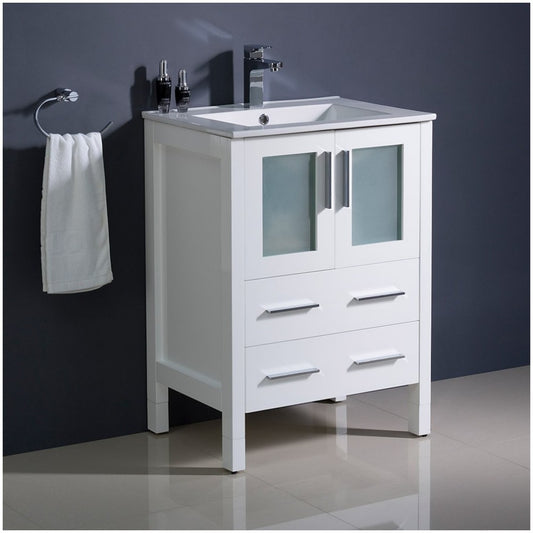 Fresca Torino 24" White Modern Bathroom Cabinet w/ Top & Integrated Sink