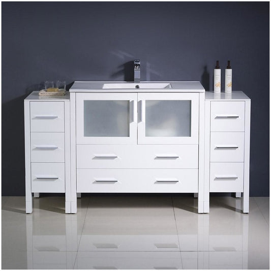 Fresca Torino 60" White Modern Bathroom Cabinets w/ Integrated Sink