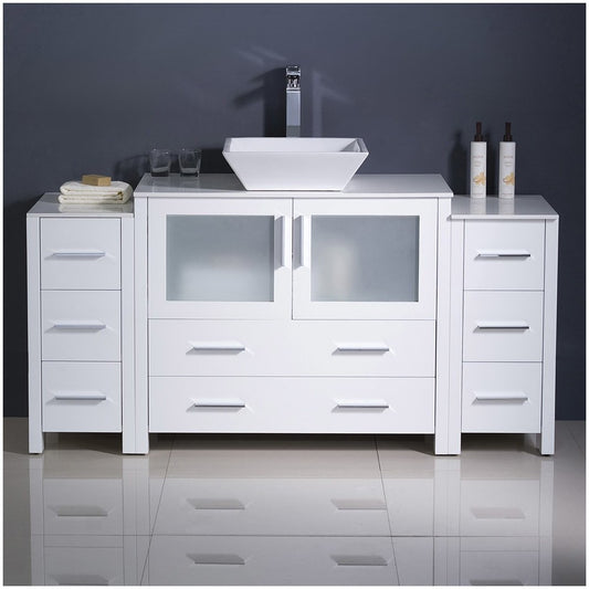 Fresca Torino 60" White Modern Bathroom Cabinets w/ Top & Vessel Sink