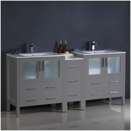 Fresca Torino 72" Gray Modern Double Sink Bathroom Cabinets w/ Integrated Sinks