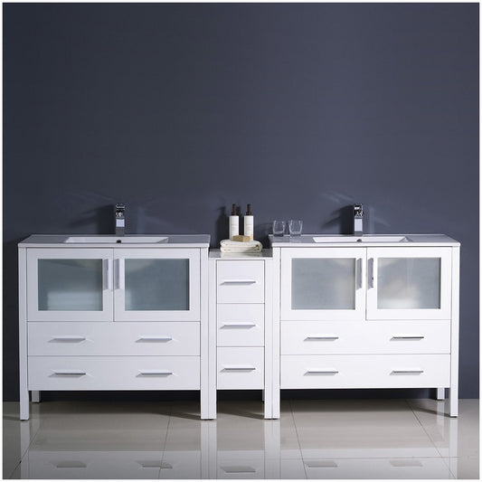 Fresca Torino 72" White Modern Double Sink Bathroom Cabinets w/ Integrated Sinks