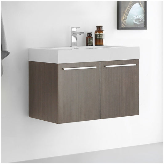 Fresca Vista 30" Gray Oak Wall Hung Modern Bathroom Cabinet w/ Integrated Sink