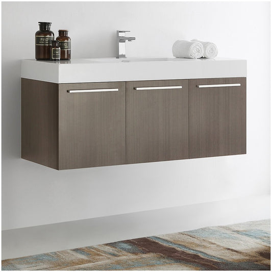 Fresca Vista 48" Gray Oak Wall Hung Modern Bathroom Cabinet w/ Integrated Sink