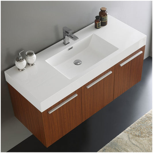 Fresca Vista 48" Teak Wall Hung Modern Bathroom Cabinet w/ Integrated Sink
