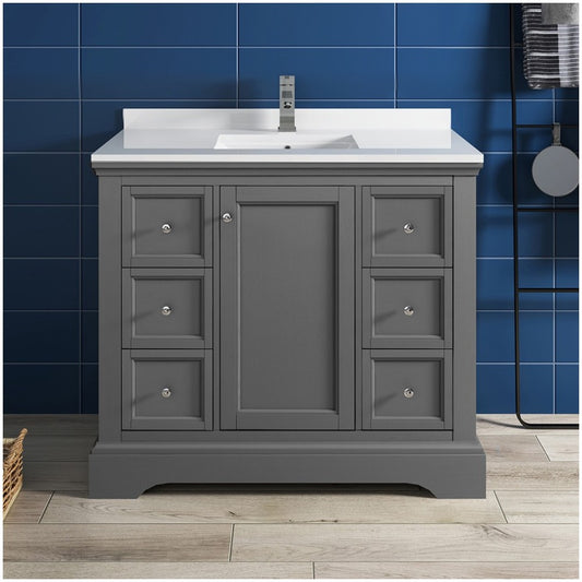 Fresca Windsor 40" Gray Textured Traditional Bathroom Cabinet w/ Top & Sink