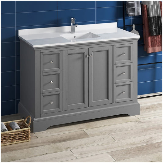 Fresca Windsor 48" Gray Textured Traditional Bathroom Cabinet w/ Top & Sink