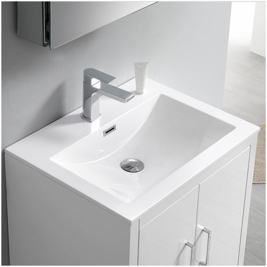 Imperia 24 Glossy White Free Standing Modern Bathroom Cabinet w/ Integrated Sink