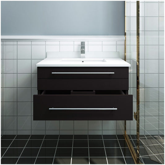 Lucera 30" Espresso Wall Hung Modern Bathroom Cabinet w/ Top & Undermount Sink
