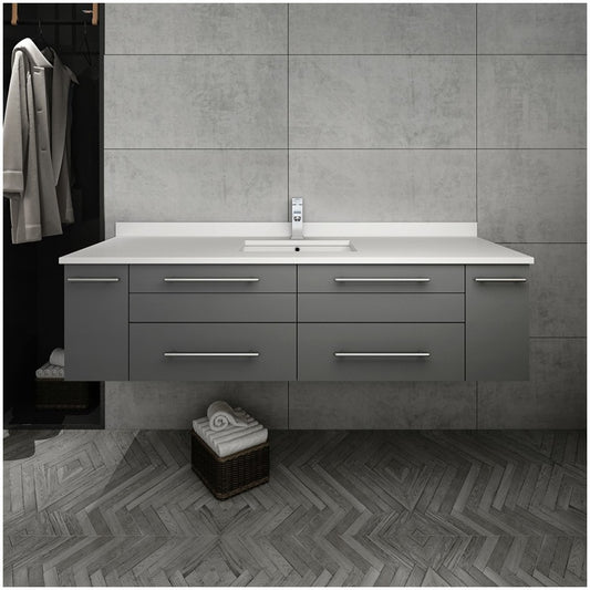 Lucera 60 Gray Wall Hung Modern Bathroom Cabinet w/ Top & Single Undermount Sink