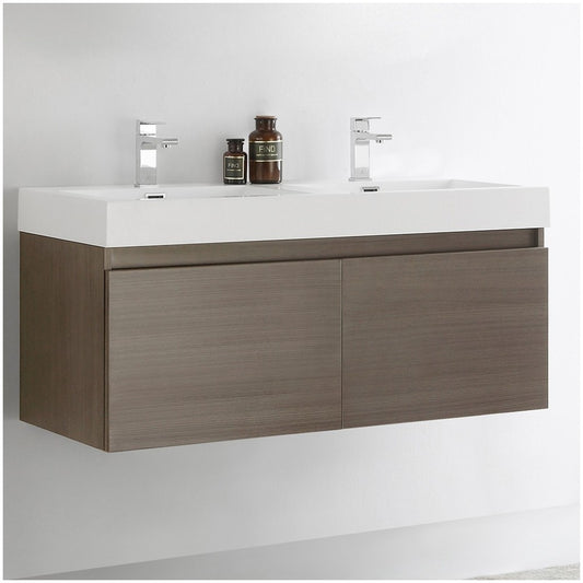 Mezzo 48 Gray Oak Wall Hung Double Sink Bathroom Cabinet w/ Integrated Sink