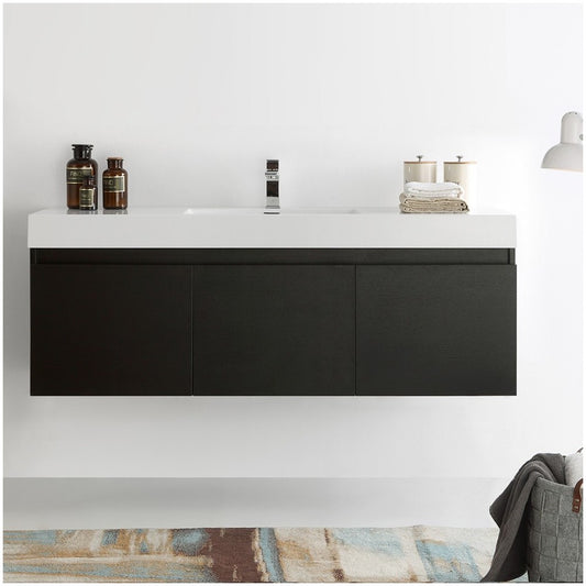 Mezzo 60" Black Wall Hung Single Sink Modern Bathroom Cabinet w/ Integrated Sink