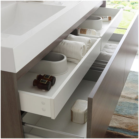 Mezzo 60 Gray Oak Wall Hung Double Sink Bathroom Cabinet w/ Integrated Sink
