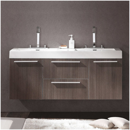 Torino 60" Gray Oak Modern Double Sink Bathroom Cabinets w/ Integrated Sinks