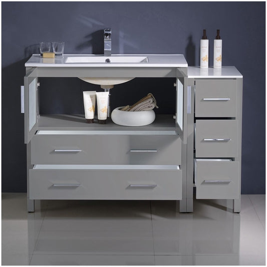 Torino 48" Gray Modern Bathroom Cabinets w/ Integrated Sink, FCB62-3612GR-I